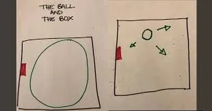 The first circle on the left depicts our grief in the beginning. Every time the circle pushes on the red button, we get that pang of grief. When that button is pushed, we feel the hurt and loss intensely.